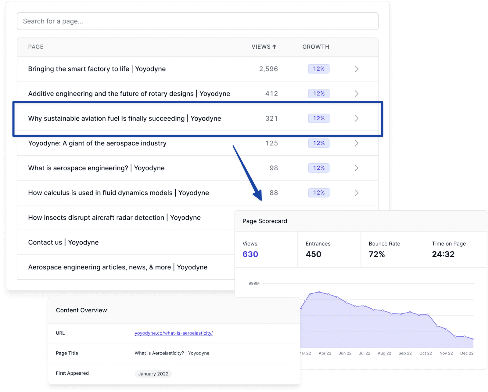 Key metrics tell every page’s story in terms of search, traffic, and engagement. Maximize the ROI for every page on your site.